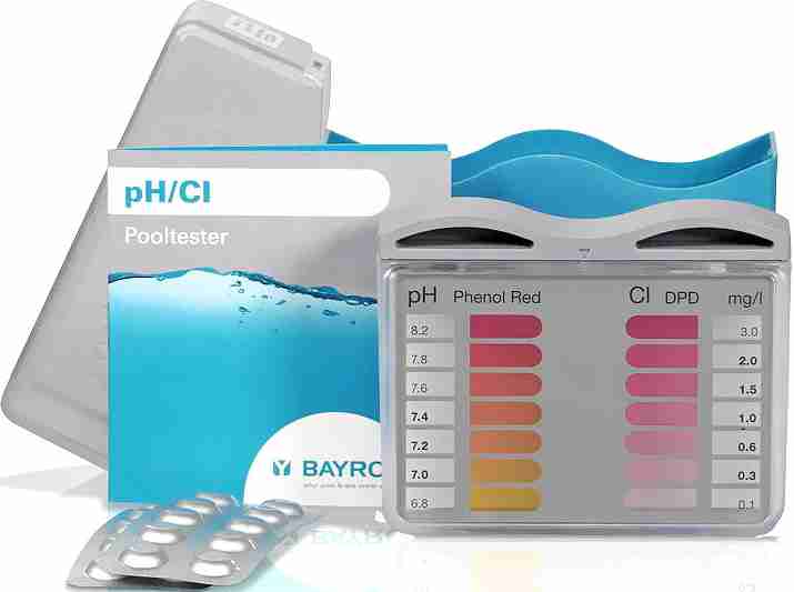 Portatiivne tabletitester aitab teil kodustes tingimustes kiirelt ja lihtsalt määrata vee pH/Cl taset. Tester koosneb kahest mensuurist ja värvilisest indikaatorist koos tähendustega. pH näitajate testiriba sisaldab 7 tähendust alates 6.8 kuni 8.2 kaasaarvatud. Klooritase määratlemise tabel (Cl) sisaldab 7 tähendust alates 0.1 kuni 3.0 mg/l. pH/Cl tähenduste määratlemiseks kasutatakse testris reagent-tablette DPD №1и Phenol Red.